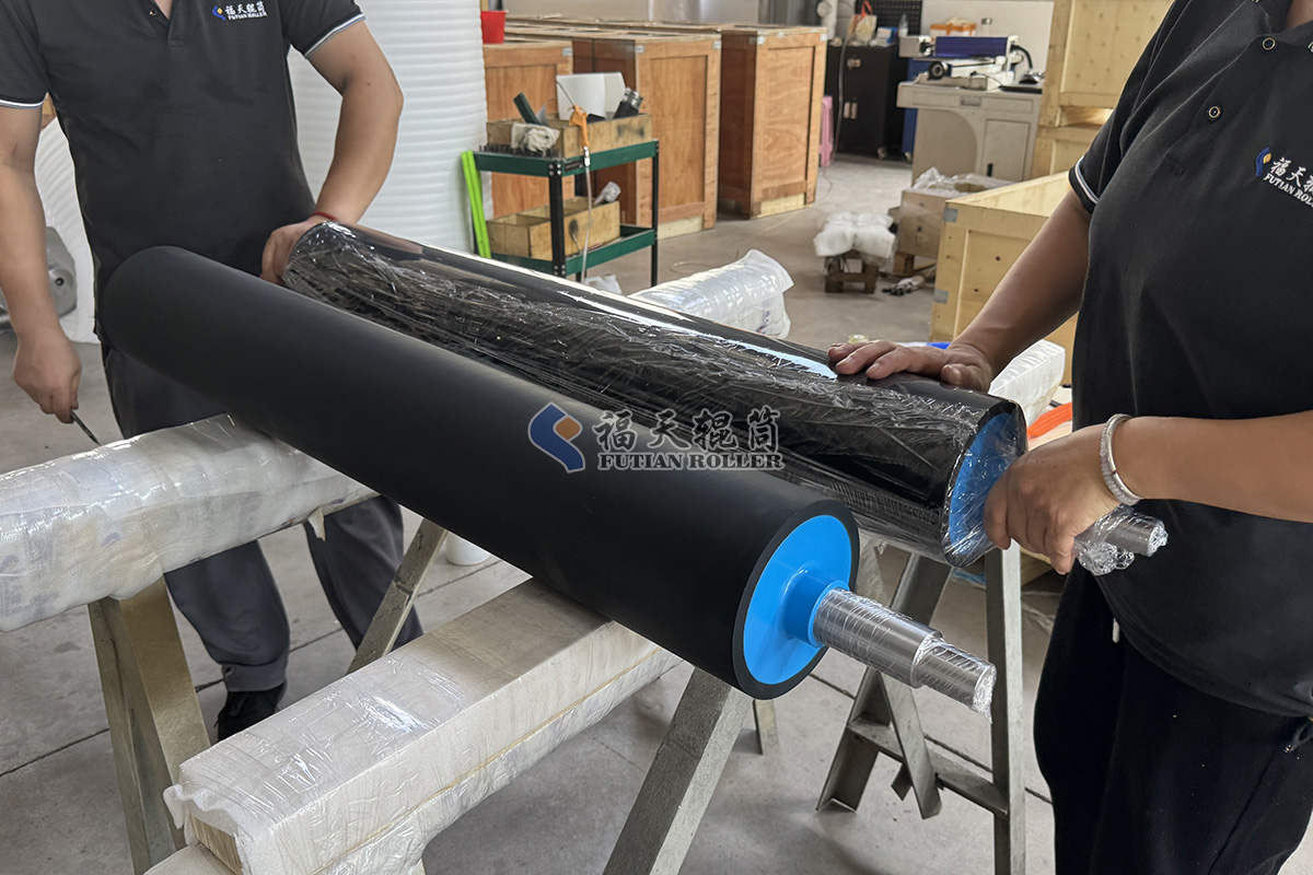 2025年8月11日上午,福天輥筒車間一批丁腈包膠輥正打包準備發往上海。此次設備...